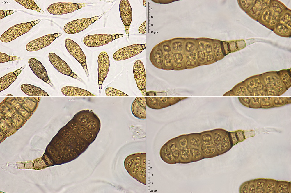 Splanchnonema argus. Conidios de su estadío anamórfico Myxocyclus polycistis. Gijón, Jardín Botánico Atlántico, 21-II-2015, Betula celtiberica. Foto: Enrique Rubio