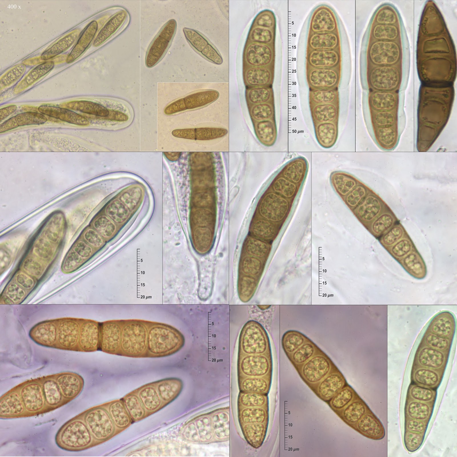 En las fotografías microscópicas pueden apreciarse tanto la fase imperfecta del hongo, Myxociclus polycistis, encontrada en el Jardín Botánico de Gijón, como la fase perfecta del hongo, encontrada en Arnao (Castrillón-Asturias).